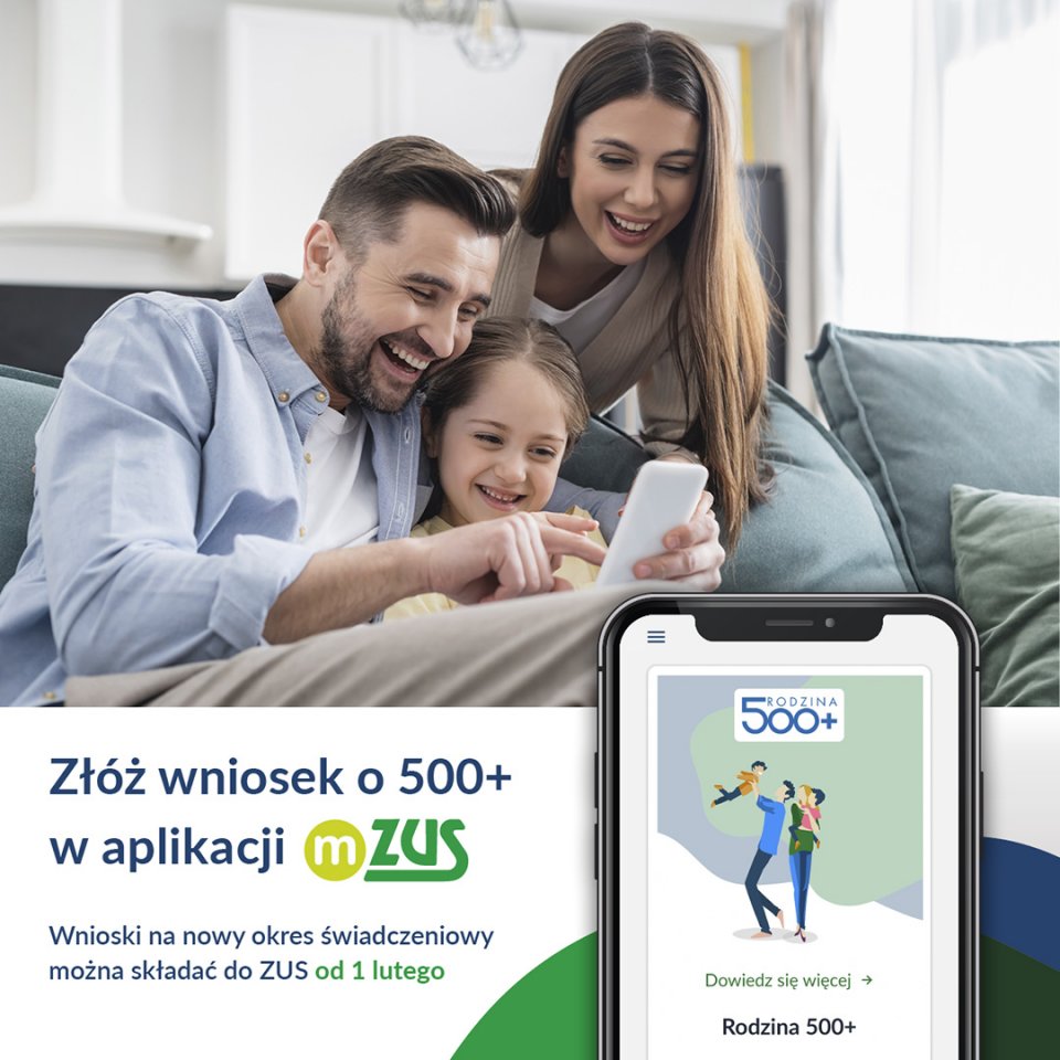 Teraz łatwo i wygodnie można złożyć wniosek o 500+ przez bezpłatną aplikację mobilną mZUS.
